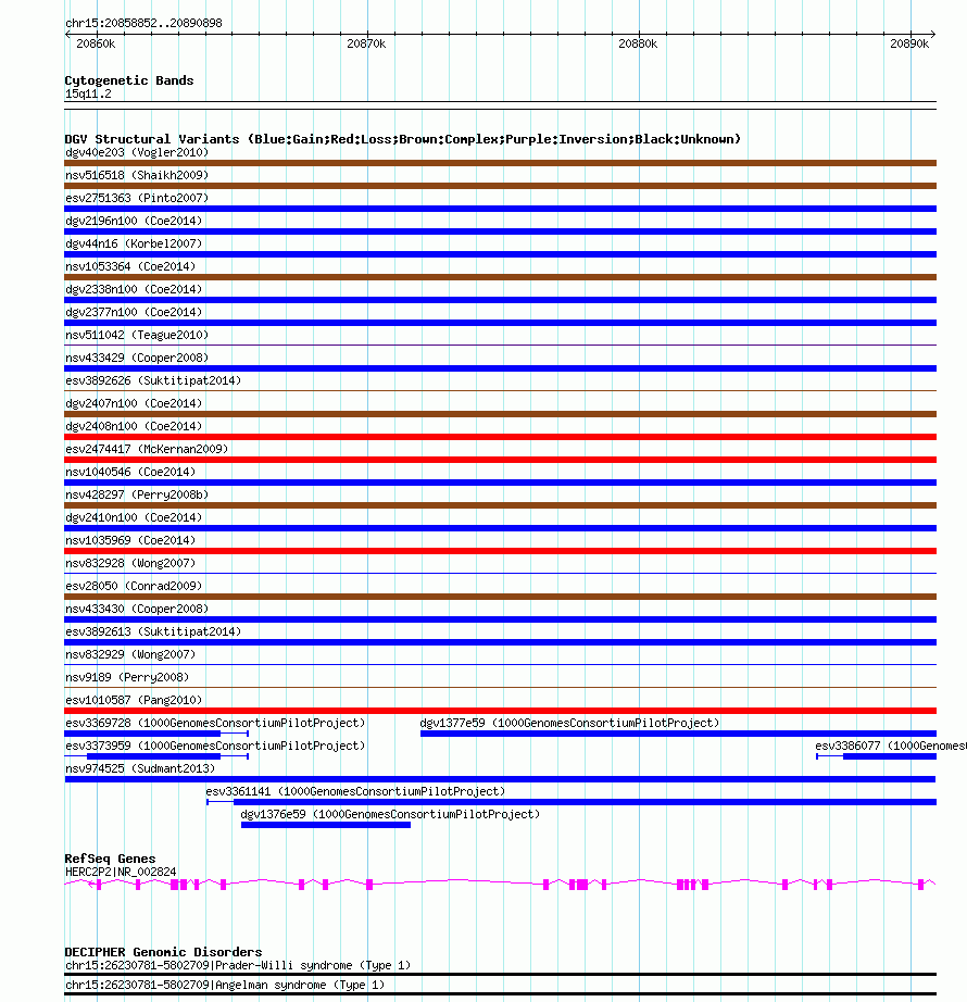 Variant DetailsVariant: nsv974525| Internal ID | 18609736 | | Landmark | | | Location Information | | | Cytoband | 15q11.2 | | Allele length | | Assembly | Allele length | | hg38 | 32047 | | hg19 | 32047 | | hg18 | 32047 |
