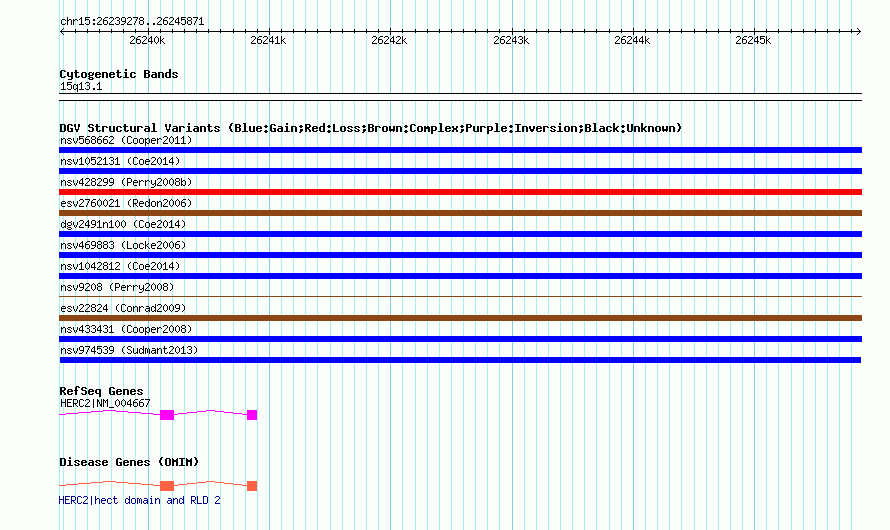 Variant DetailsVariant: nsv974539| Internal ID | 18609750 | | Landmark | | | Location Information | | | Cytoband | 15q13.1 | | Allele length | | Assembly | Allele length | | hg38 | 6594 | | hg19 | 6594 | | hg18 | 6594 |