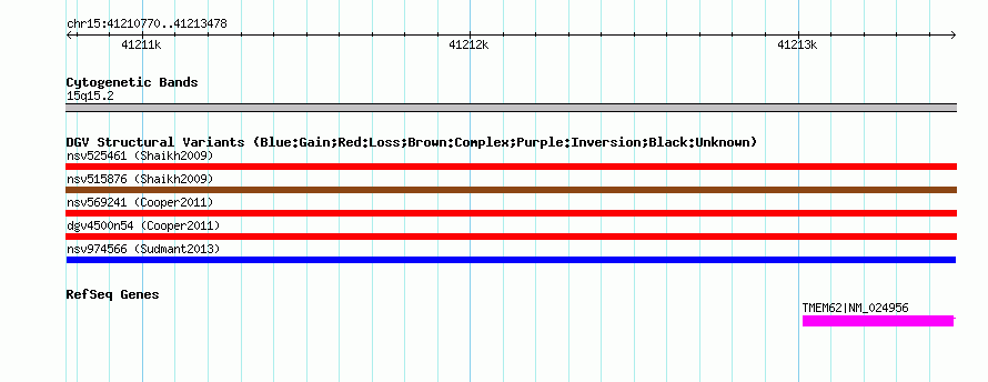 Variant DetailsVariant: nsv974566| Internal ID | 18609777 | | Landmark | | | Location Information | | | Cytoband | 15q15.2 | | Allele length | | Assembly | Allele length | | hg38 | 2709 | | hg19 | 2709 | | hg18 | 2709 |