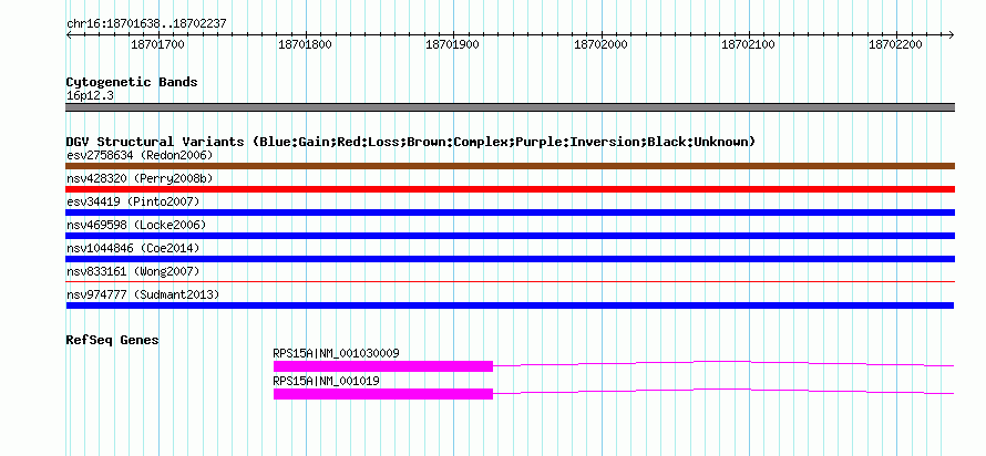 Variant DetailsVariant: nsv974777| Internal ID | 18609986 | | Landmark | | | Location Information | | | Cytoband | 16p12.3 | | Allele length | | Assembly | Allele length | | hg38 | 600 | | hg19 | 600 | | hg18 | 600 |