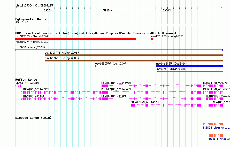 Variant DetailsVariant: nsv9751| Internal ID | 15500977 | | Landmark | | | Location Information | | | Cytoband | 19q13.42 | | Allele length | | Assembly | Allele length | | hg38 | 34644 | | hg19 | 34761 | | hg18 | 34761 | | hg17 | 34761 |