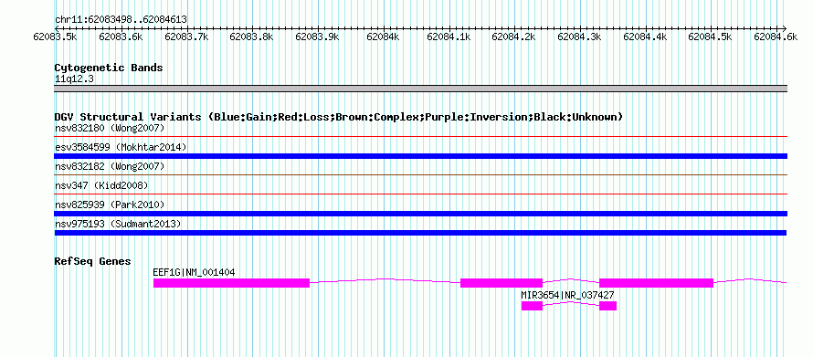 | | Variant Type | CNV duplication | | Copy Number | | | Allele State | | | Allele Origin | | | Probe Count | | | Validation Flag | | | Merged Status | M | | Merged Variants | | | Supporting Variants | nssv1891954, nssv1891958, nssv1891961, nssv1891959, nssv1891956, nssv1891955, nssv1891963, nssv1891962, nssv1891957, nssv1891960 | | Samples | HGDP01284, HGDP00665, HGDP00998, HGDP00521, HGDP00778, HGDP01307, HGDP00542, HGDP01029, HGDP00456, HGDP00927 | | Known Genes | EEF1G, MIR3654 | | Method | Sequencing | | Analysis | lineage specific fixed duplications | | Platform | Not reported | | Comments | | | Reference | Sudmant_et_al_2013 | | Pubmed ID | 23825009 | | Accession Number(s) | nsv975193