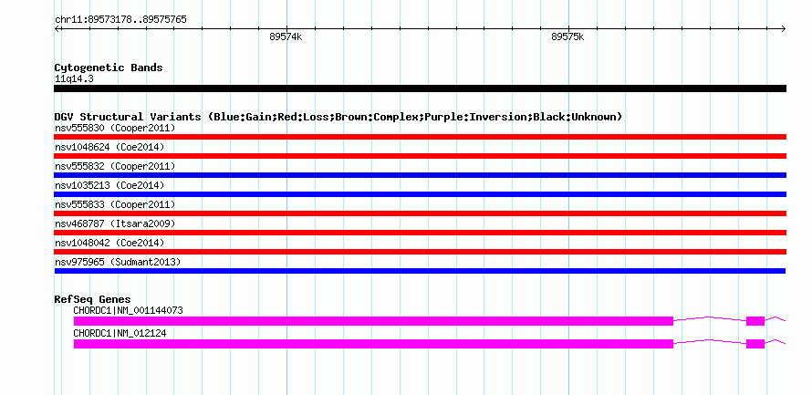 Variant DetailsVariant: nsv975965| Internal ID | 18611172 | | Landmark | | | Location Information | | | Cytoband | 11q14.3 | | Allele length | | Assembly | Allele length | | hg38 | 2588 | | hg19 | 2588 | | hg18 | 2588 |