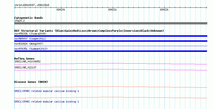 Variant DetailsVariant: nsv976351| Internal ID | 18611557 | | Landmark | | | Location Information | | | Cytoband | 14q24.2 | | Allele length | | Assembly | Allele length | | hg38 | 3722 | | hg19 | 3722 | | hg18 | 3722 |