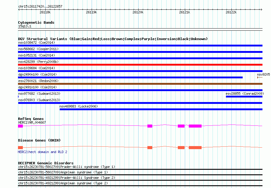 | | Variant Type | CNV duplication | | Copy Number | | | Allele State | | | Allele Origin | | | Probe Count | | | Validation Flag | | | Merged Status | M | | Merged Variants | | | Supporting Variants | nssv2010539, nssv2010541, nssv2010540, nssv2010542, nssv2010538, nssv2010534, nssv2010536, nssv2010533, nssv2010537, nssv2010535 | | Samples | HGDP01284, HGDP00665, HGDP00998, HGDP00521, HGDP00778, HGDP01307, HGDP00542, HGDP01029, HGDP00456, HGDP00927 | | Known Genes | HERC2 | | Method | Sequencing | | Analysis | lineage specific fixed duplications | | Platform | Not reported | | Comments | | | Reference | Sudmant_et_al_2013 | | Pubmed ID | 23825009 | | Accession Number(s) | nsv976903