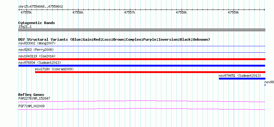 Variant DetailsVariant: nsv976934| Internal ID | 18612140 | | Landmark | | | Location Information | | | Cytoband | 15q21.1 | | Allele length | | Assembly | Allele length | | hg38 | 4755 | | hg19 | 4755 | | hg18 | 4755 |