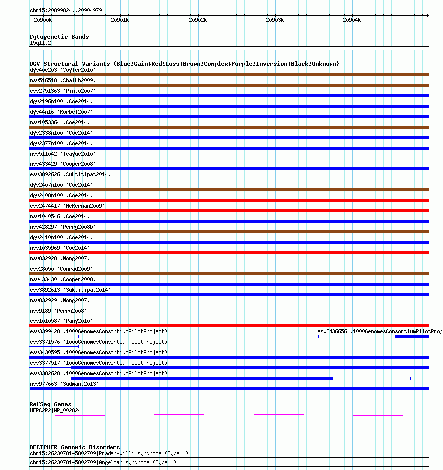 Variant DetailsVariant: nsv977663| Internal ID | 18612869 | | Landmark | | | Location Information | | | Cytoband | 15q11.2 | | Allele length | | Assembly | Allele length | | hg38 | 5156 | | hg19 | 5156 | | hg18 | 5156 |
