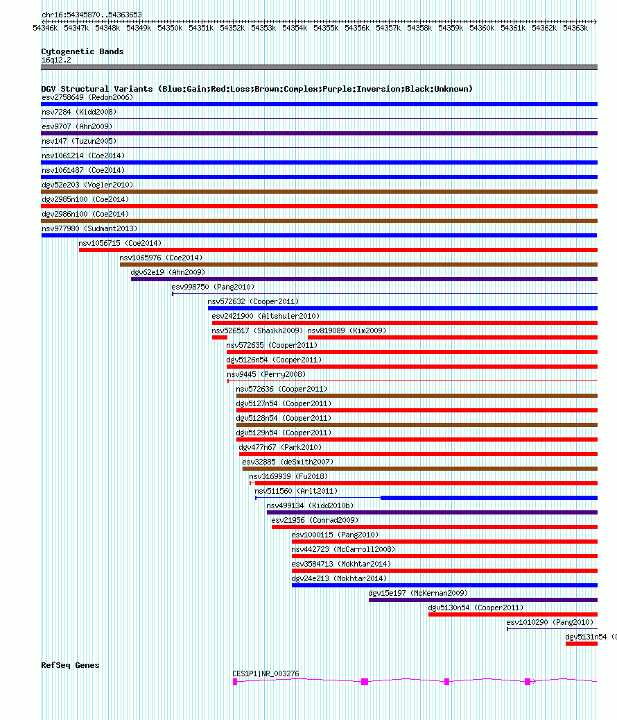 Variant DetailsVariant: nsv977980| Internal ID | 18613185 | | Landmark | | | Location Information | | | Cytoband | 16q12.2 | | Allele length | | Assembly | Allele length | | hg38 | 17784 | | hg19 | 17784 | | hg18 | 17784 |