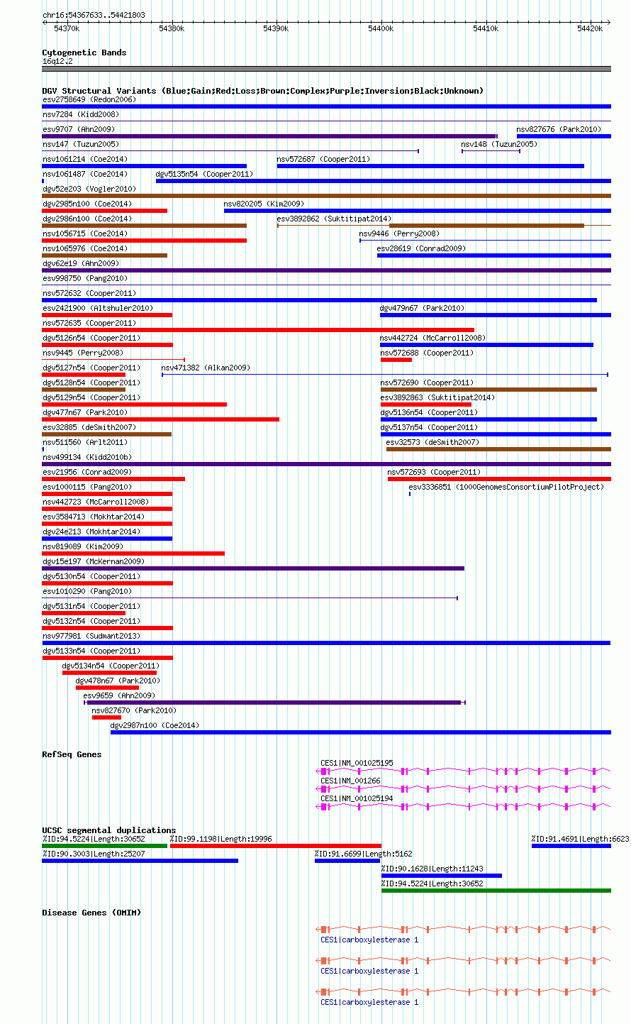 Variant DetailsVariant: nsv977981| Internal ID | 18266500 | | Landmark | | | Location Information | | | Cytoband | 16q12.2 | | Allele length | | Assembly | Allele length | | hg38 | 54171 | | hg19 | 54171 | | hg18 | 54171 |