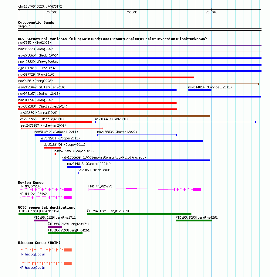 Variant DetailsVariant: nsv978167| Internal ID | 18266686 | | Landmark | | | Location Information | | | Cytoband | 16q22.2 | | Allele length | | Assembly | Allele length | | hg38 | 30350 | | hg19 | 30350 | | hg18 | 30350 |