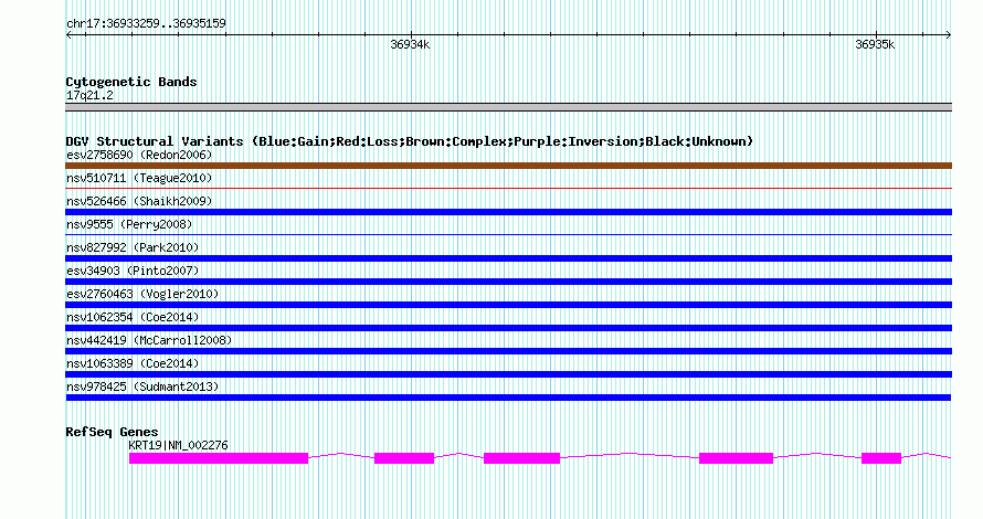 Variant DetailsVariant: nsv978425| Internal ID | 18613630 | | Landmark | | | Location Information | | | Cytoband | 17q21.2 | | Allele length | | Assembly | Allele length | | hg38 | 1901 | | hg19 | 1901 | | hg18 | 1901 |