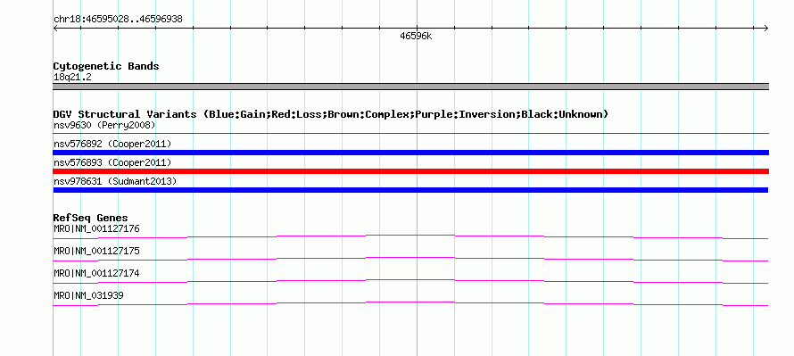 Variant DetailsVariant: nsv978631| Internal ID | 18613834 | | Landmark | | | Location Information | | | Cytoband | 18q21.2 | | Allele length | | Assembly | Allele length | | hg38 | 1911 | | hg19 | 1911 | | hg18 | 1911 |