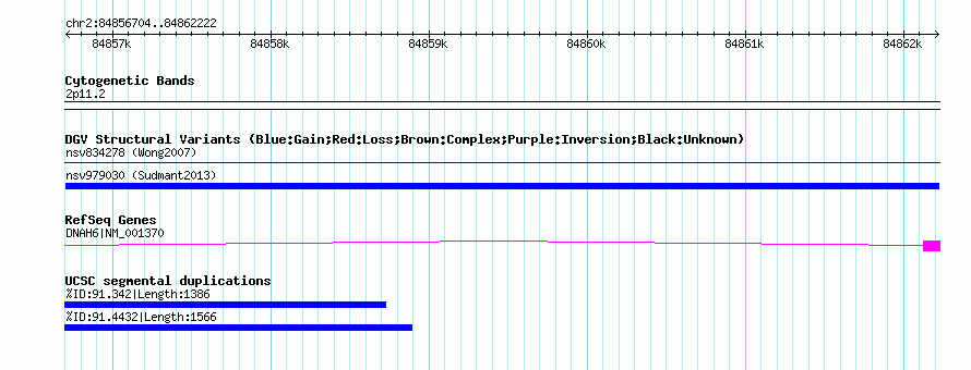 Variant DetailsVariant: nsv979030| Internal ID | 18267547 | | Landmark | | | Location Information | | | Cytoband | 2p11.2 | | Allele length | | Assembly | Allele length | | hg38 | 5519 | | hg19 | 5519 | | hg18 | 5519 |