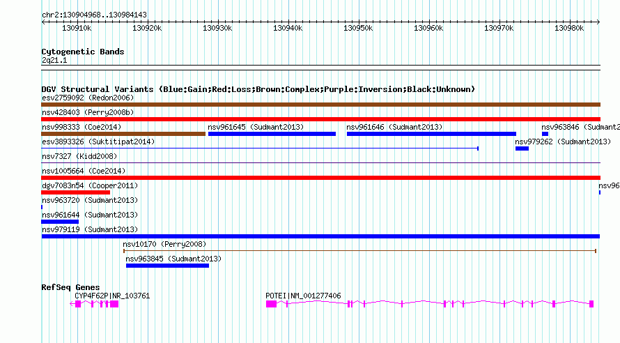 Variant DetailsVariant: nsv979119| Internal ID | 18614322 | | Landmark | | | Location Information | | | Cytoband | 2q21.1 | | Allele length | | Assembly | Allele length | | hg38 | 79176 | | hg19 | 79176 | | hg18 | 79176 |