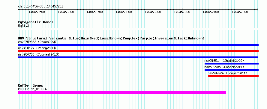 Variant DetailsVariant: nsv980735| Internal ID | 18615935 | | Landmark | | | Location Information | | | Cytoband | 5q31.3 | | Allele length | | Assembly | Allele length | | hg38 | 827 | | hg19 | 827 | | hg18 | 827 |