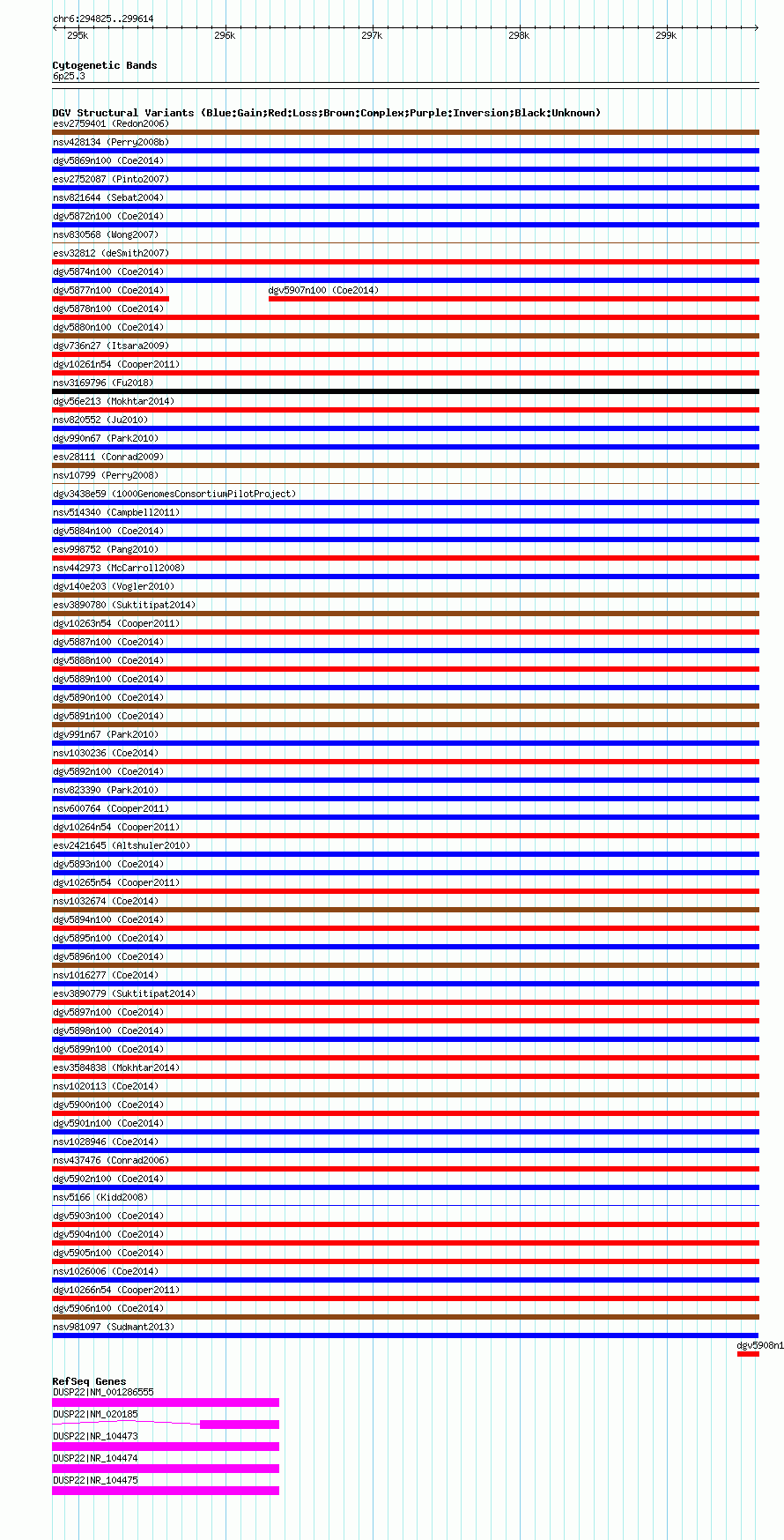 Variant DetailsVariant: nsv981097| Internal ID | 18616296 | | Landmark | | | Location Information | | | Cytoband | 6p25.3 | | Allele length | | Assembly | Allele length | | hg38 | 4790 | | hg19 | 4790 | | hg18 | 4790 |
