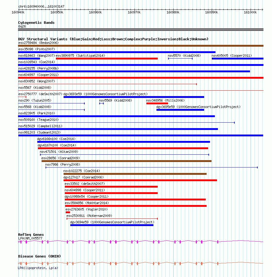 Variant DetailsVariant: nsv981203| Internal ID | 18616402 | | Landmark | | | Location Information | | | Cytoband | 6q26 | | Allele length | | Assembly | Allele length | | hg38 | 63142 | | hg19 | 63142 | | hg18 | 63142 |
