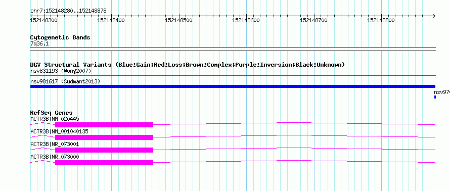 Variant DetailsVariant: nsv981617| Internal ID | 18616814 | | Landmark | | | Location Information | | | Cytoband | 7q36.1 | | Allele length | | Assembly | Allele length | | hg38 | 599 | | hg19 | 599 | | hg18 | 599 |