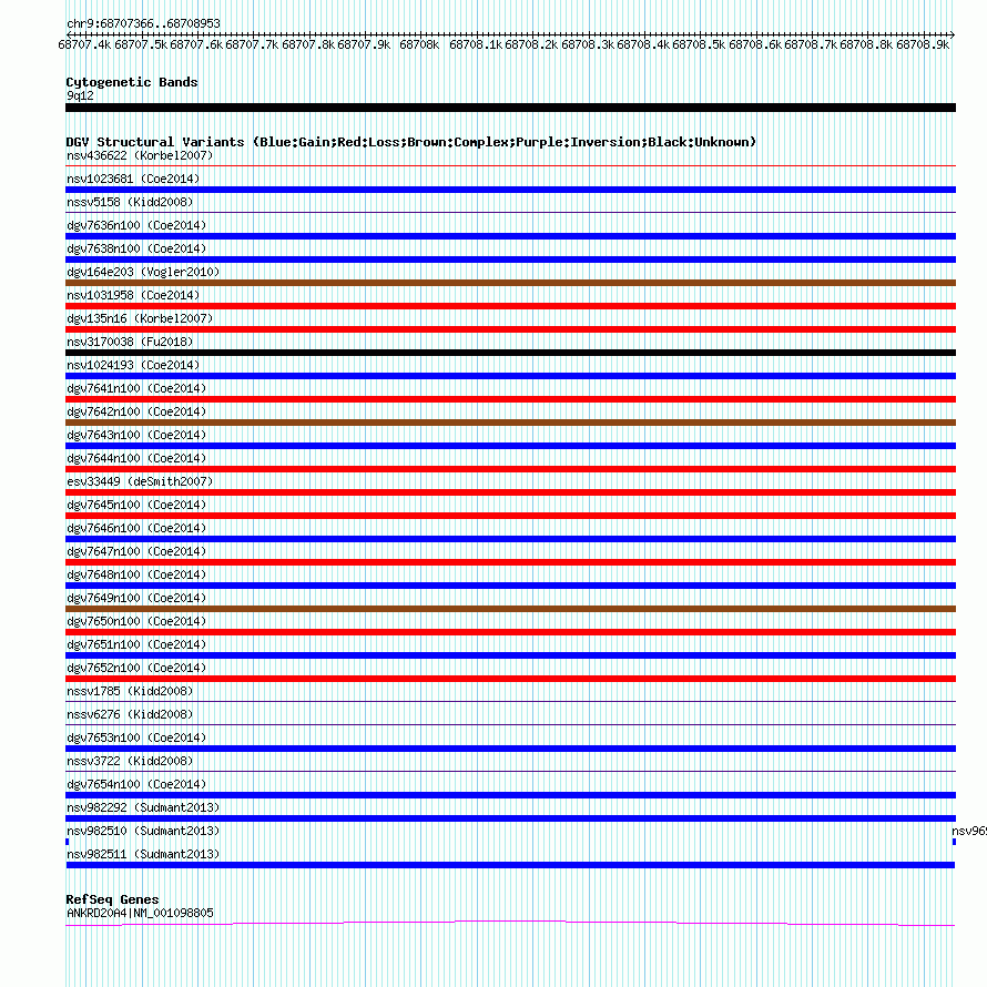 | | Variant Type | CNV duplication | | Copy Number | | | Allele State | | | Allele Origin | | | Probe Count | | | Validation Flag | | | Merged Status | M | | Merged Variants | | | Supporting Variants | nssv2744872, nssv2744795, nssv2744797, nssv2744865, nssv2744803, nssv2744802, nssv2744873, nssv2744801, nssv2744870, nssv2744799, nssv2744868, nssv2744796, nssv2744798, nssv2744866, nssv2744800, nssv2744874, nssv2744871, nssv2744804, nssv2744869, nssv2744867 | | Samples | HGDP01284, HGDP00665, HGDP00998, HGDP00521, HGDP00778, HGDP01307, HGDP00542, HGDP01029, HGDP00456, HGDP00927 | | Known Genes | ANKRD20A4 | | Method | Sequencing | | Analysis | lineage specific fixed expansions | | Platform | Not reported | | Comments | | | Reference | Sudmant_et_al_2013 | | Pubmed ID | 23825009 | | Accession Number(s) | nsv982511