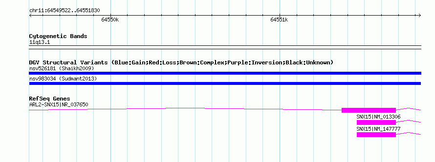 Variant DetailsVariant: nsv983034| Internal ID | 18618228 | | Landmark | | | Location Information | | | Cytoband | 11q13.1 | | Allele length | | Assembly | Allele length | | hg38 | 2309 | | hg19 | 2309 | | hg18 | 2309 |
