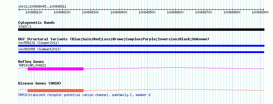 Variant DetailsVariant: nsv983058| Internal ID | 18618252 | | Landmark | | | Location Information | | | Cytoband | 11q22.1 | | Allele length | | Assembly | Allele length | | hg38 | 867 | | hg19 | 867 | | hg18 | 867 |