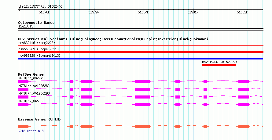 Variant DetailsVariant: nsv983328| Internal ID | 18618522 | | Landmark | | | Location Information | | | Cytoband | 12q13.13 | | Allele length | | Assembly | Allele length | | hg38 | 4935 | | hg19 | 4935 | | hg18 | 4935 |