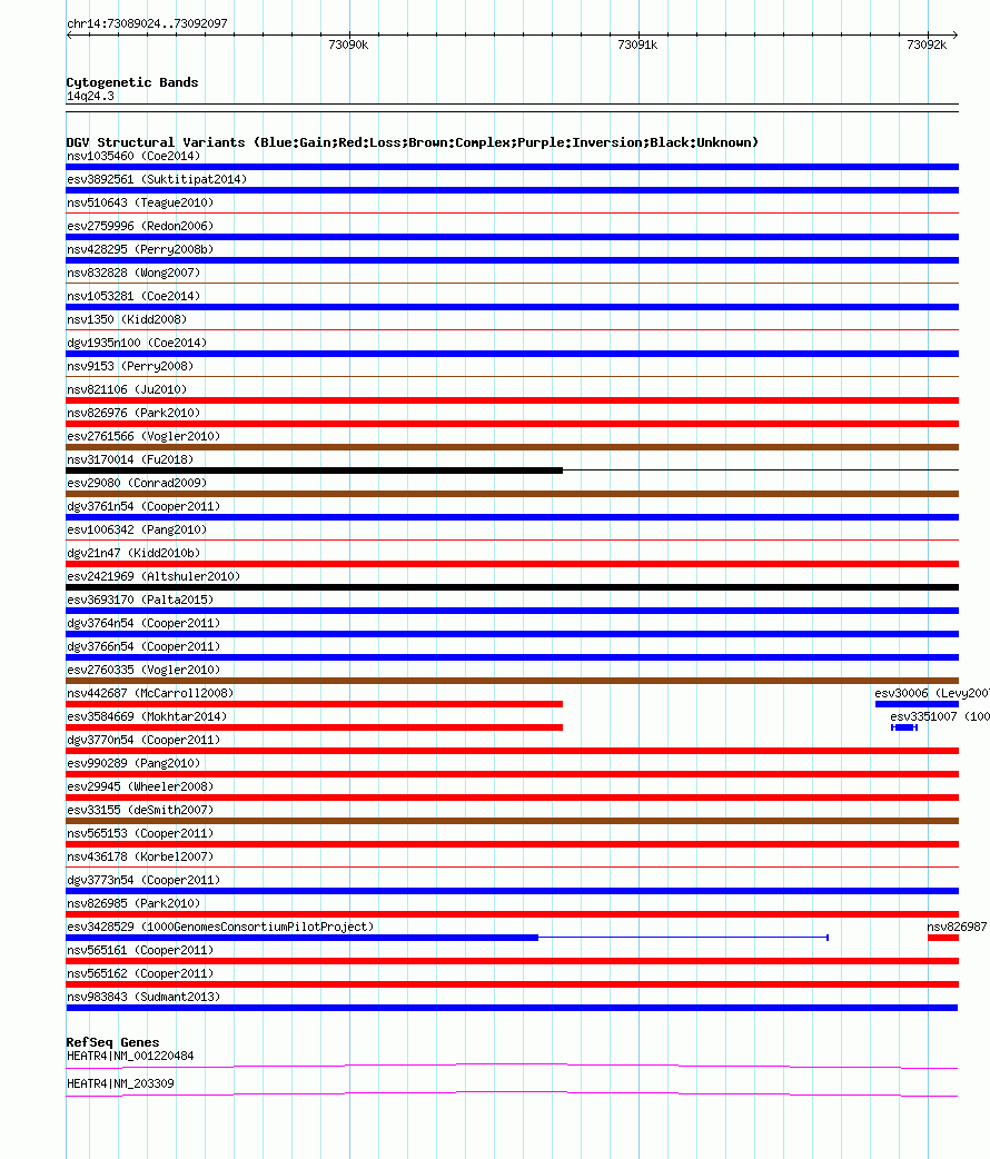Variant DetailsVariant: nsv983843| Internal ID | 18619035 | | Landmark | | | Location Information | | | Cytoband | 14q24.3 | | Allele length | | Assembly | Allele length | | hg38 | 3074 | | hg19 | 3074 | | hg18 | 3074 |