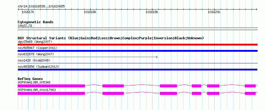 Variant DetailsVariant: nsv983856| Internal ID | 18272362 | | Landmark | | | Location Information | | | Cytoband | 14q32.31 | | Allele length | | Assembly | Allele length | | hg38 | 3848 | | hg19 | 3848 | | hg18 | 3848 |