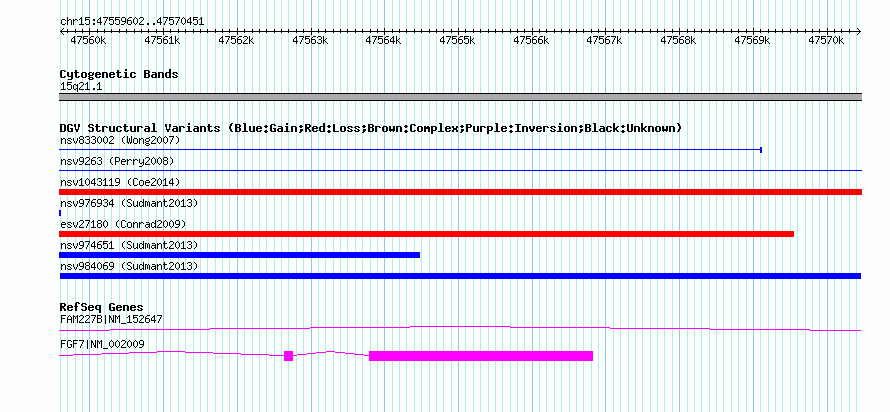 Variant DetailsVariant: nsv984069| Internal ID | 18619259 | | Landmark | | | Location Information | | | Cytoband | 15q21.1 | | Allele length | | Assembly | Allele length | | hg38 | 10850 | | hg19 | 10850 | | hg18 | 10850 |