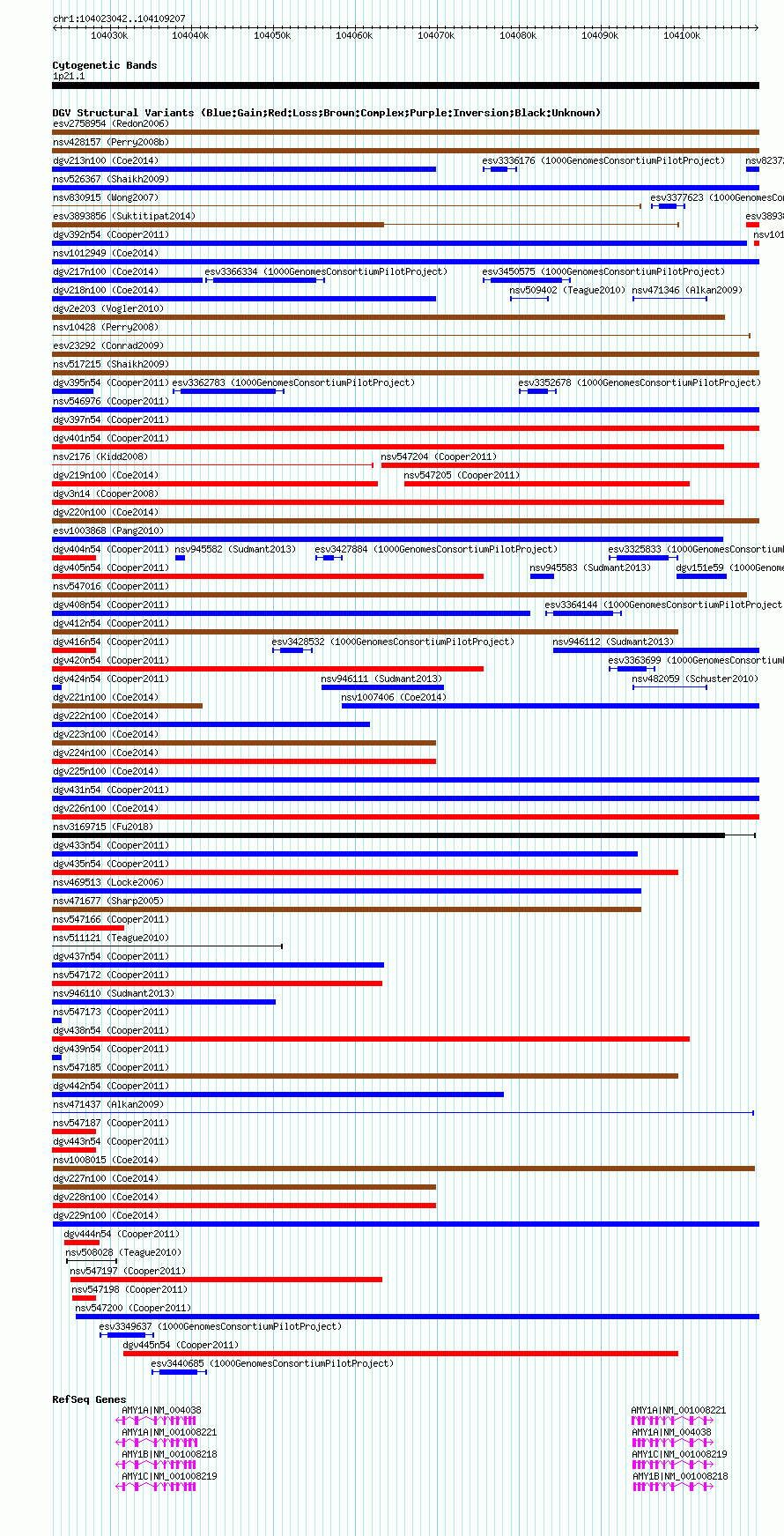 | | Variant Type | CNV gain | | Copy Number | | | Allele State | | | Allele Origin | | | Probe Count | | | Validation Flag | | | Merged Status | M | | Merged Variants | dgv229n100 | | Supporting Variants | nssv3701129 | | Samples | | | Known Genes | AMY1A, AMY1B, AMY1C | | Method | SNP array | | Analysis | Affymetrix SNP array copy number analysis | | Platform | Affymetrix SNP Array 6.0 | | Comments | | | Reference | Coe_et_al_2014 | | Pubmed ID | 25217958 | | Accession Number(s) | nsv997283