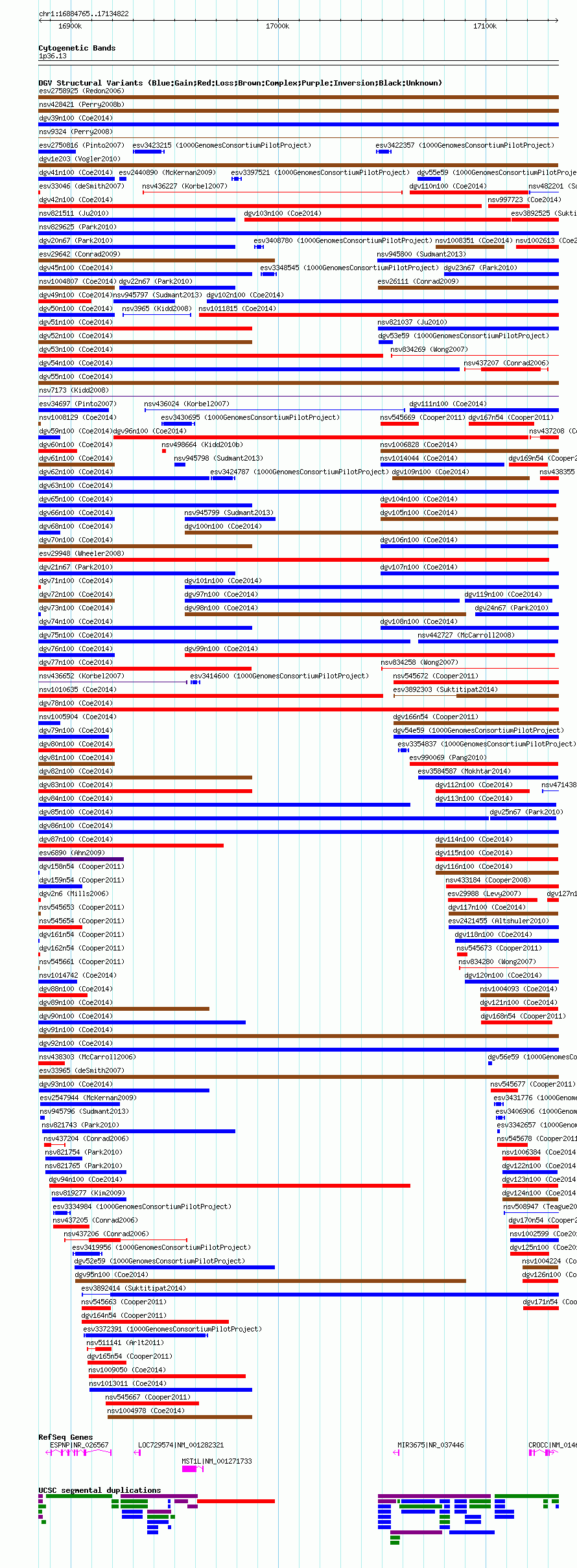 Variant DetailsVariant: nsv997587| Internal ID | 18810437 | | Landmark | | | Location Information | | | Cytoband | 1p36.13 | | Allele length | | Assembly | Allele length | | hg38 | 250058 | | hg19 | 250058 | | hg18 | 250058 |