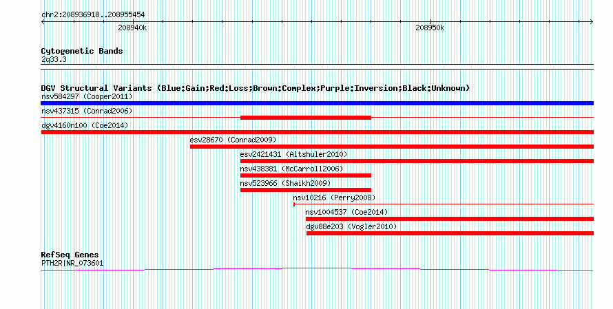 Variant DetailsVariant: nsv997721| Internal ID | 18810571 | | Landmark | | | Location Information | | | Cytoband | 2q33.3 | | Allele length | | Assembly | Allele length | | hg38 | 18537 | | hg19 | 18537 | | hg18 | 18537 |