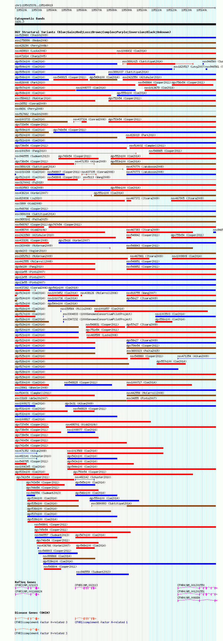 Variant DetailsVariant: nsv997733| Internal ID | 19157270 | | Landmark | | | Location Information | | | Cytoband | 1q31.3 | | Allele length | | Assembly | Allele length | | hg38 | 133644 | | hg19 | 133644 | | hg18 | 133644 |