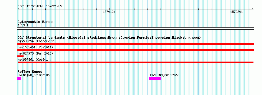 Variant DetailsVariant: nsv997861| Internal ID | 18810711 | | Landmark | | | Location Information | | | Cytoband | 1q23.1 | | Allele length | | Assembly | Allele length | | hg38 | 18447 | | hg19 | 18447 | | hg18 | 18447 |