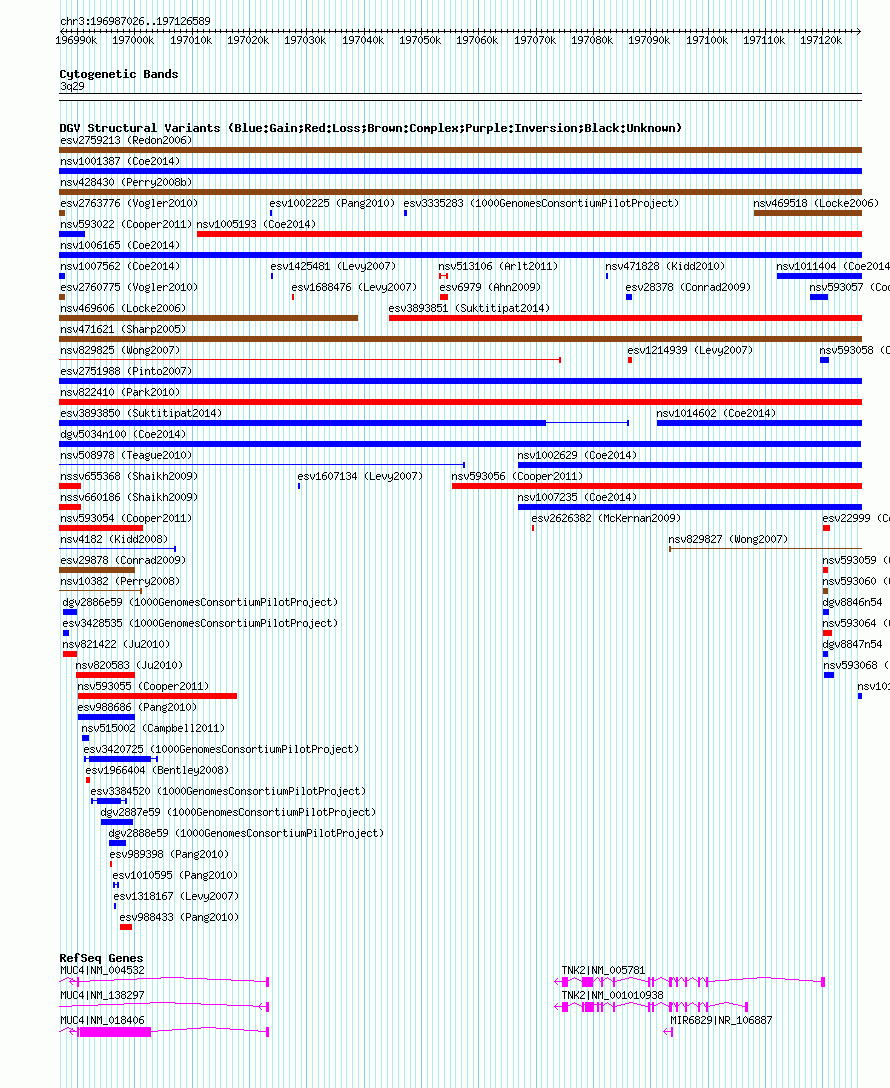 Variant DetailsVariant: nsv997893| Internal ID | 19157429 | | Landmark | | | Location Information | | | Cytoband | 3q29 | | Allele length | | Assembly | Allele length | | hg38 | 140801 | | hg19 | 140801 | | hg18 | 139564 |