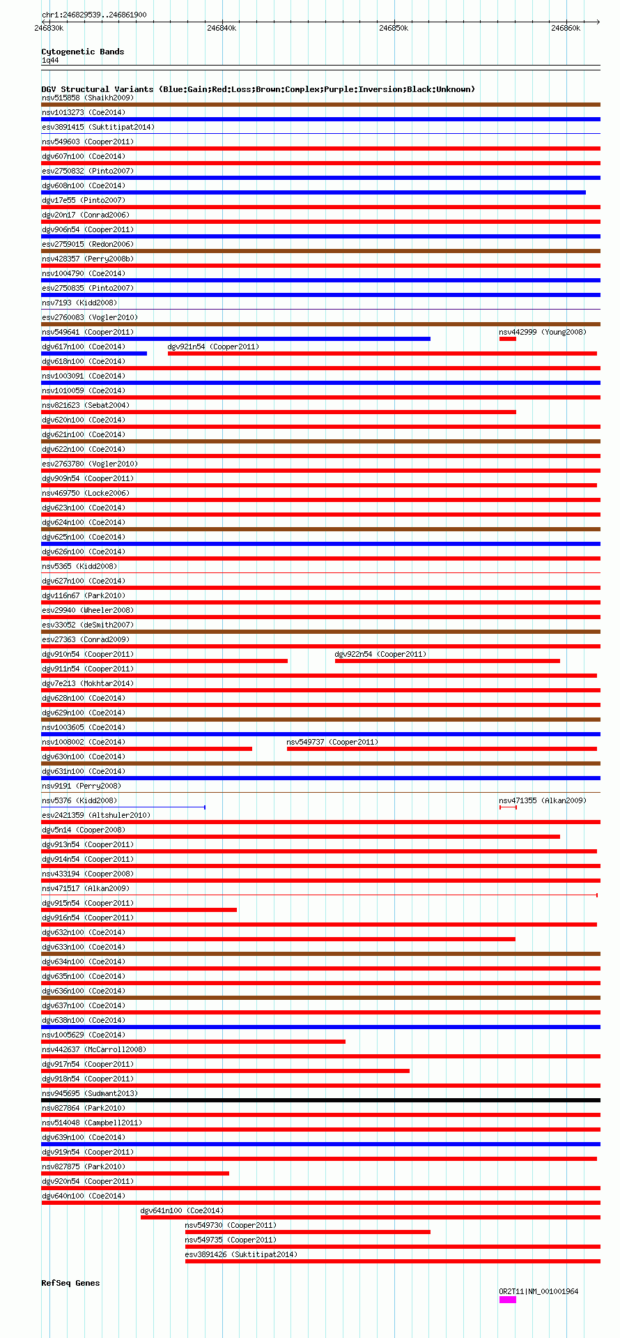 | | Variant Type | CNV loss | | Copy Number | | | Allele State | | | Allele Origin | | | Probe Count | | | Validation Flag | | | Merged Status | M | | Merged Variants | dgv640n100 | | Supporting Variants | nssv3488245, nssv3494578 | | Samples | | | Known Genes | OR2T11 | | Method | SNP array | | Analysis | Affymetrix SNP array copy number analysis | | Platform | Affymetrix SNP Array 6.0 | | Comments | | | Reference | Coe_et_al_2014 | | Pubmed ID | 25217958 | | Accession Number(s) | nsv998057