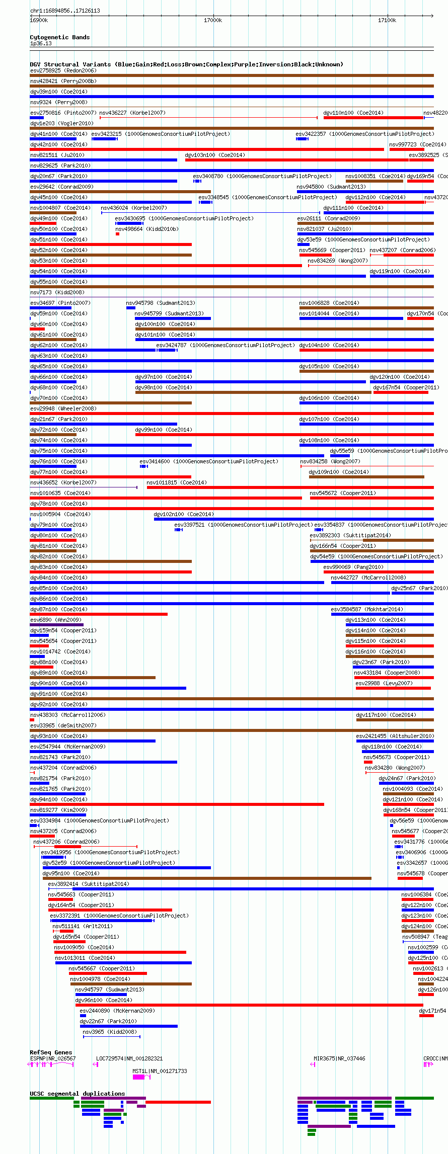 Variant DetailsVariant: nsv998741| Internal ID | 18811591 | | Landmark | | | Location Information | | | Cytoband | 1p36.13 | | Allele length | | Assembly | Allele length | | hg38 | 231258 | | hg19 | 231258 | | hg18 | 231258 |
