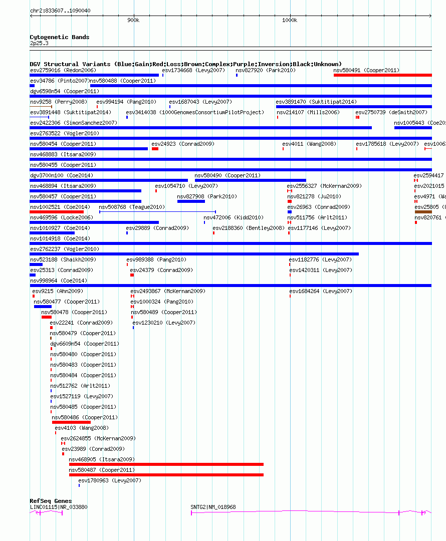 Variant DetailsVariant: nsv998964| Internal ID | 19158500 | | Landmark | | | Location Information | | | Cytoband | 2p25.3 | | Allele length | | Assembly | Allele length | | hg38 | 256780 | | hg19 | 256434 | | hg18 | 256434 |