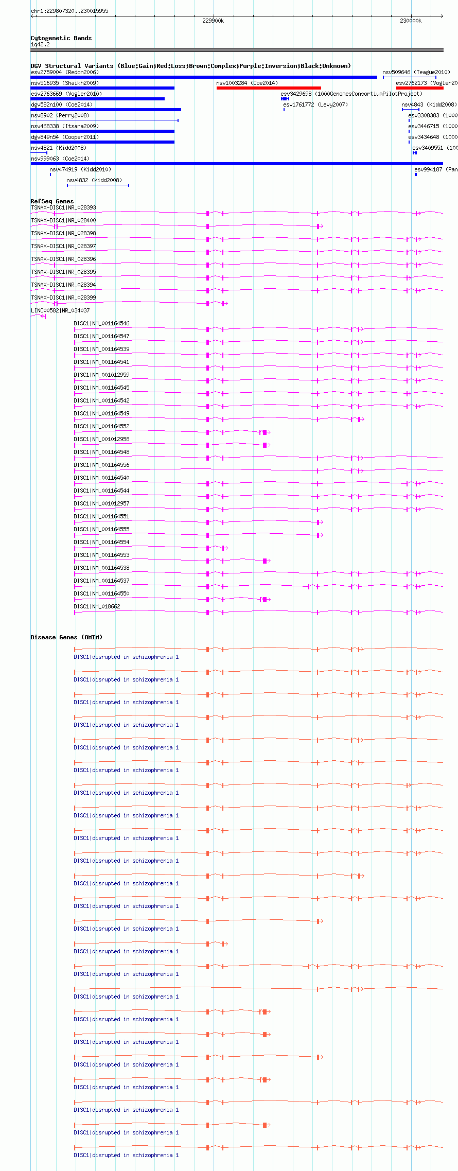 | Known Genes | DISC1, LINC00582, TSNAX-DISC1 |