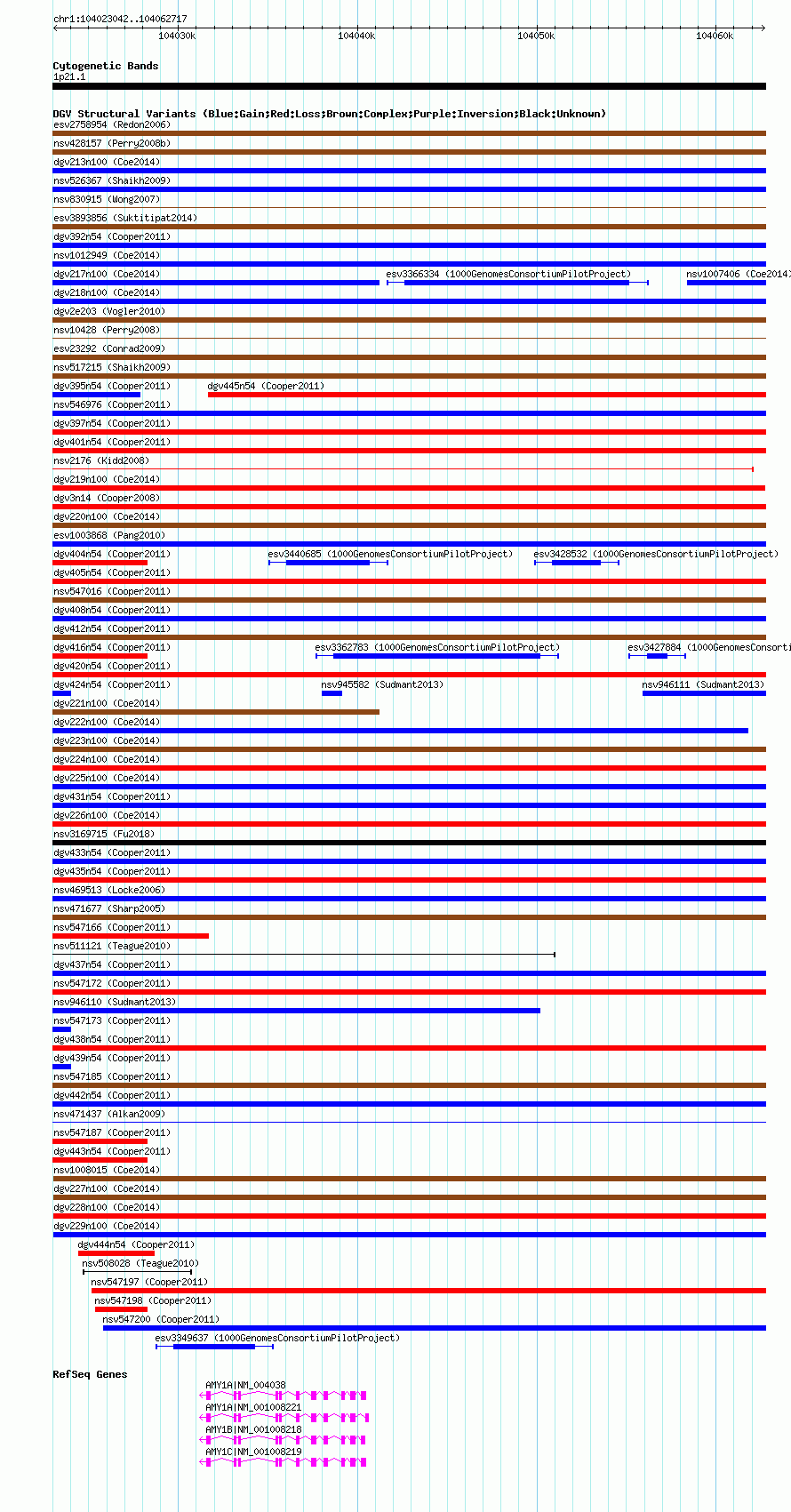 | | Variant Type | CNV gain+loss | | Copy Number | | | Allele State | | | Allele Origin | | | Probe Count | | | Validation Flag | | | Merged Status | M | | Merged Variants | dgv227n100 | | Supporting Variants | nssv3701091, nssv3491430, nssv3490721, nssv3483135, nssv3498116, nssv3485810, nssv3496522, nssv3493075, nssv3492072, nssv3494506, nssv3489663, nssv3701090, nssv3489892, nssv3490143, nssv3501813, nssv3491594, nssv3485555, nssv3493324, nssv3485928, nssv3495193, nssv3488062, nssv3499437, nssv3495351, nssv3489476, nssv3485097, nssv3483583, nssv3498680, nssv3494225, nssv3492548, nssv3485139, nssv3493825, nssv3489631, nssv3484584, nssv3483619, nssv3501922, nssv3488680, nssv3485595, nssv3497384, nssv3494240, nssv3497954, nssv3485446, nssv3488857, nssv3491904, nssv3501758, nssv3492198, nssv3491811, nssv3497072, nssv3497683, nssv3488636, nssv3502253, nssv3499552 | | Samples | | | Known Genes | AMY1A, AMY1B, AMY1C | | Method | SNP array | | Analysis | Affymetrix SNP array copy number analysis | | Platform | Affymetrix SNP Array 6.0 | | Comments | | | Reference | Coe_et_al_2014 | | Pubmed ID | 25217958 | | Accession Number(s) | nsv999121