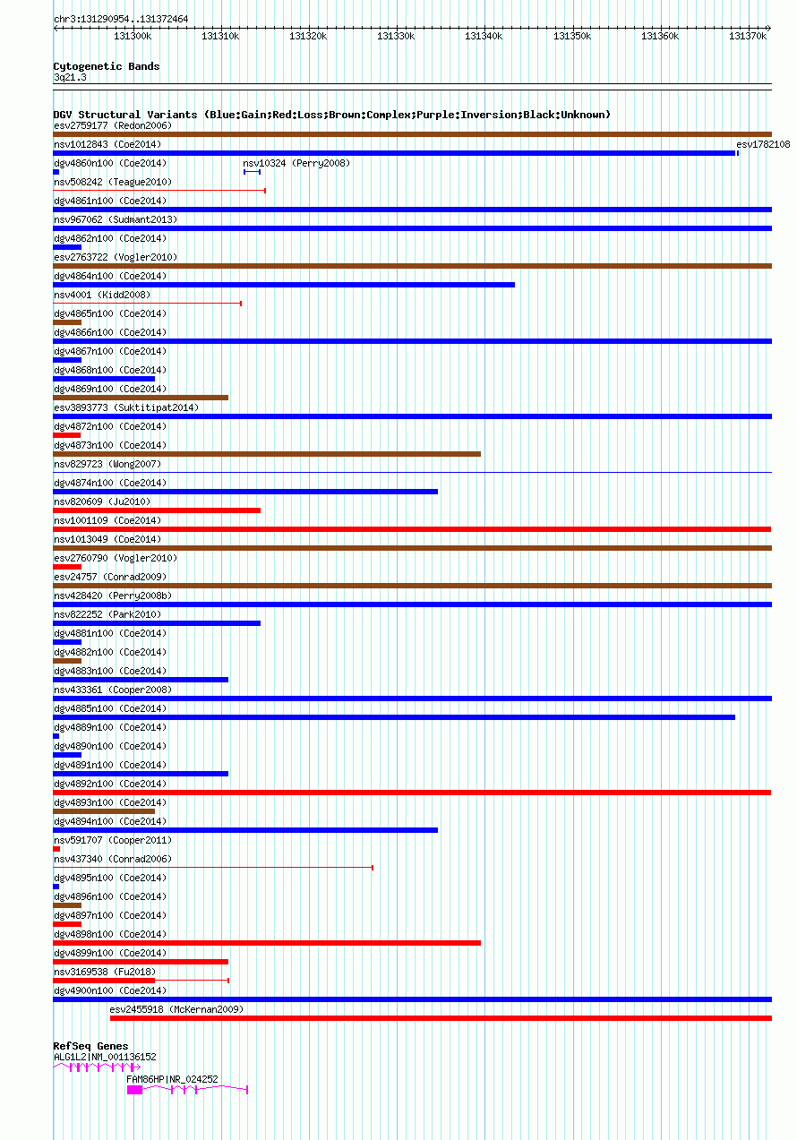 Variant DetailsVariant: nsv999197| Internal ID | 19158733 | | Landmark | | | Location Information | | | Cytoband | 3q21.3 | | Allele length | | Assembly | Allele length | | hg38 | 81511 | | hg19 | 81511 | | hg18 | 81511 |