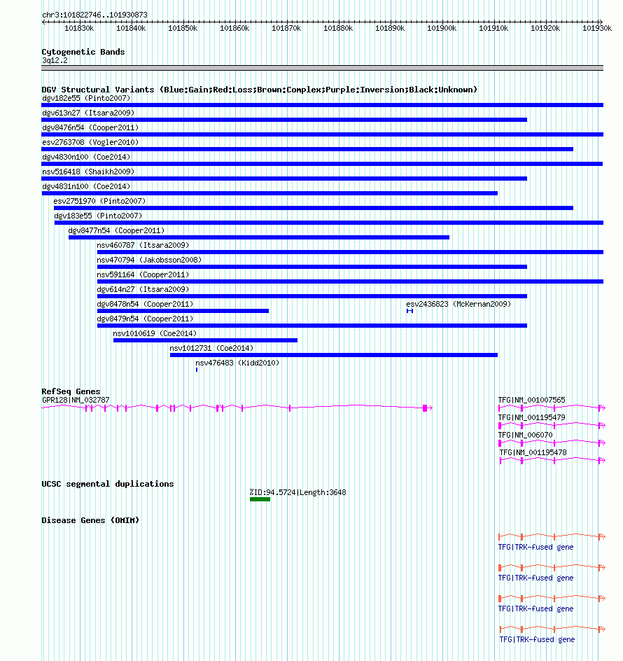 Variant DetailsVariant: nsv999432| Internal ID | 18812282 | | Landmark | | | Location Information | | | Cytoband | 3q12.2 | | Allele length | | Assembly | Allele length | | hg38 | 108128 | | hg19 | 108128 | | hg18 | 108128 |