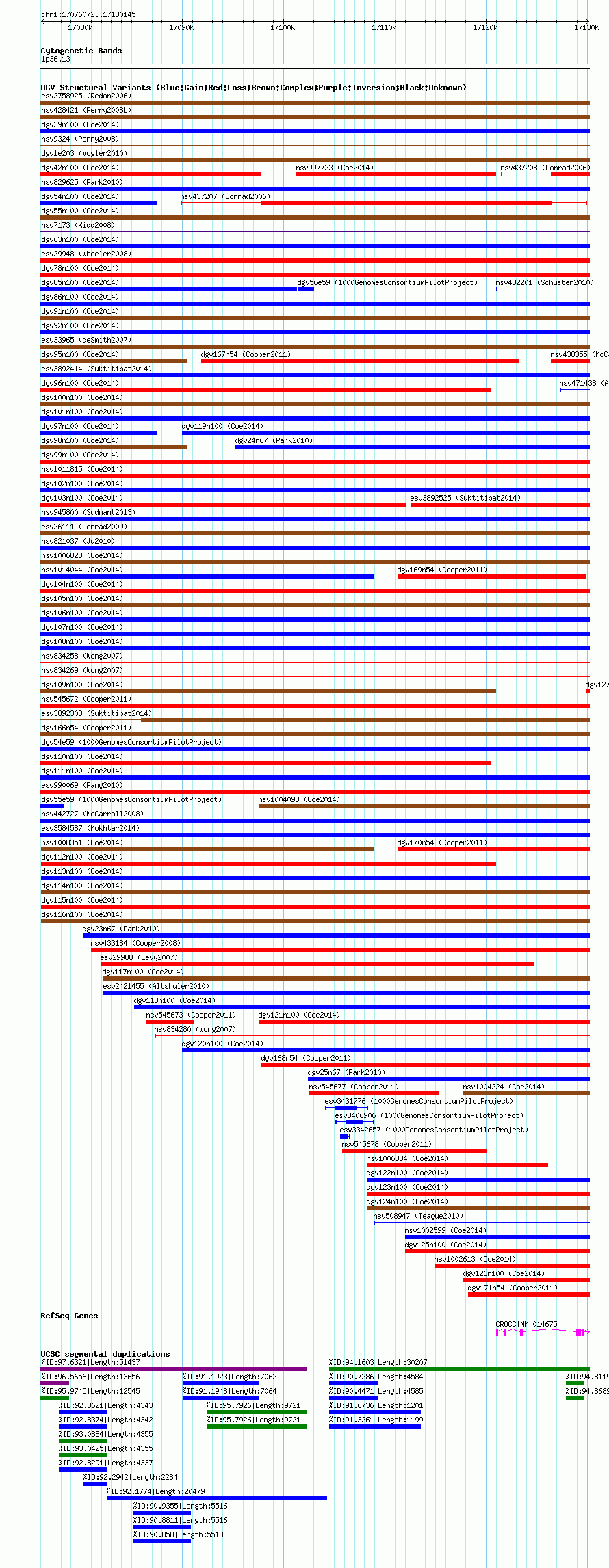 Variant DetailsVariant: nsv999493| Internal ID | 18812343 | | Landmark | | | Location Information | | | Cytoband | 1p36.13 | | Allele length | | Assembly | Allele length | | hg38 | 54074 | | hg19 | 54074 | | hg18 | 54074 |