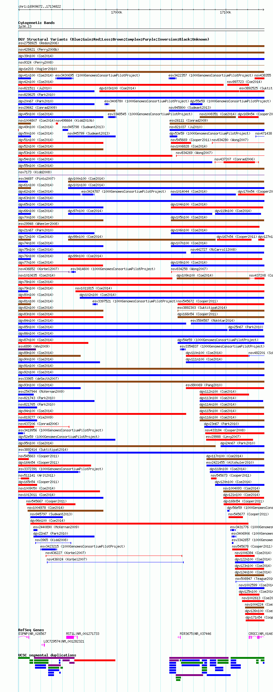 Variant DetailsVariant: nsv999659| Internal ID | 18812509 | | Landmark | | | Location Information | | | Cytoband | 1p36.13 | | Allele length | | Assembly | Allele length | | hg38 | 225151 | | hg19 | 225151 | | hg18 | 225151 |