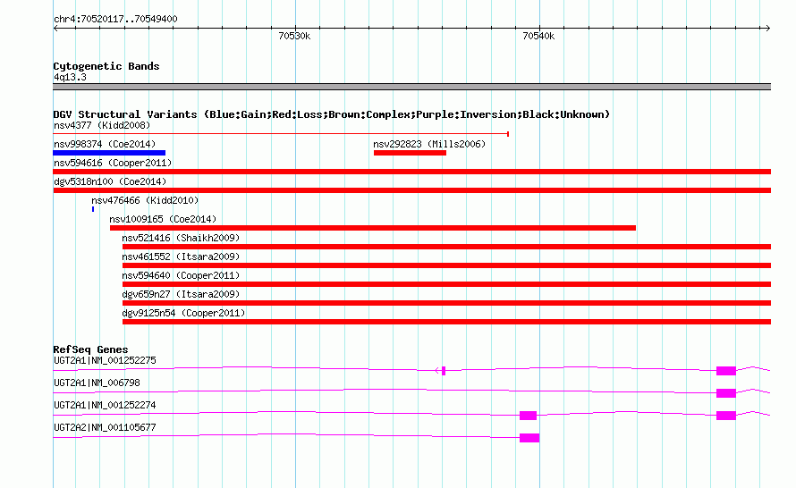 | | Variant Type | CNV loss | | Copy Number | | | Allele State | | | Allele Origin | | | Probe Count | | | Validation Flag | | | Merged Status | M | | Merged Variants | dgv5318n100 | | Supporting Variants | nssv3633058 | | Samples | | | Known Genes | UGT2A1, UGT2A2 | | Method | SNP array | | Analysis | Affymetrix SNP array copy number analysis | | Platform | Affymetrix SNP Array 6.0 | | Comments | | | Reference | Coe_et_al_2014 | | Pubmed ID | 25217958 | | Accession Number(s) | nsv999993