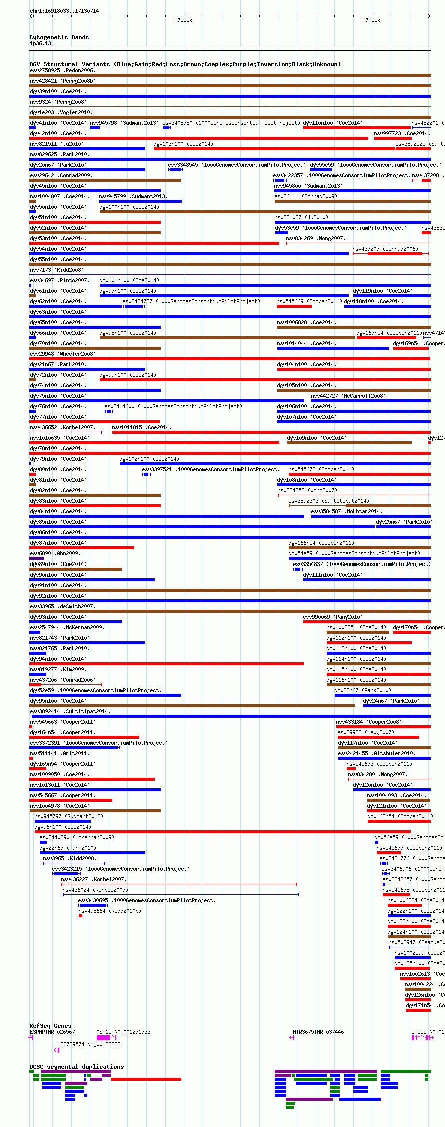 Variant DetailsVariant: nsv999997| Internal ID | 18812847 | | Landmark | | | Location Information | | | Cytoband | 1p36.13 | | Allele length | | Assembly | Allele length | | hg38 | 212682 | | hg19 | 212682 | | hg18 | 212682 |