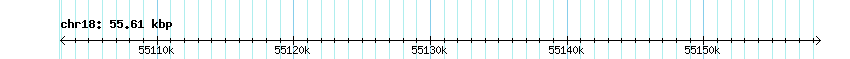 Genomic Variants in Human Genome (Build GRCh37: Feb. 2009, hg19): 55.61 kbp from chr18:55,102,917..55,158,530
