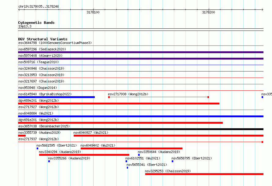 Variant DetailsVariant: essv6828685| Internal ID | 10229299 | | Landmark | | | Location Information | | | Cytoband | 19p13.3 | | Allele length | | Assembly | Allele length | | hg38 | 212 | | hg19 | 212 |